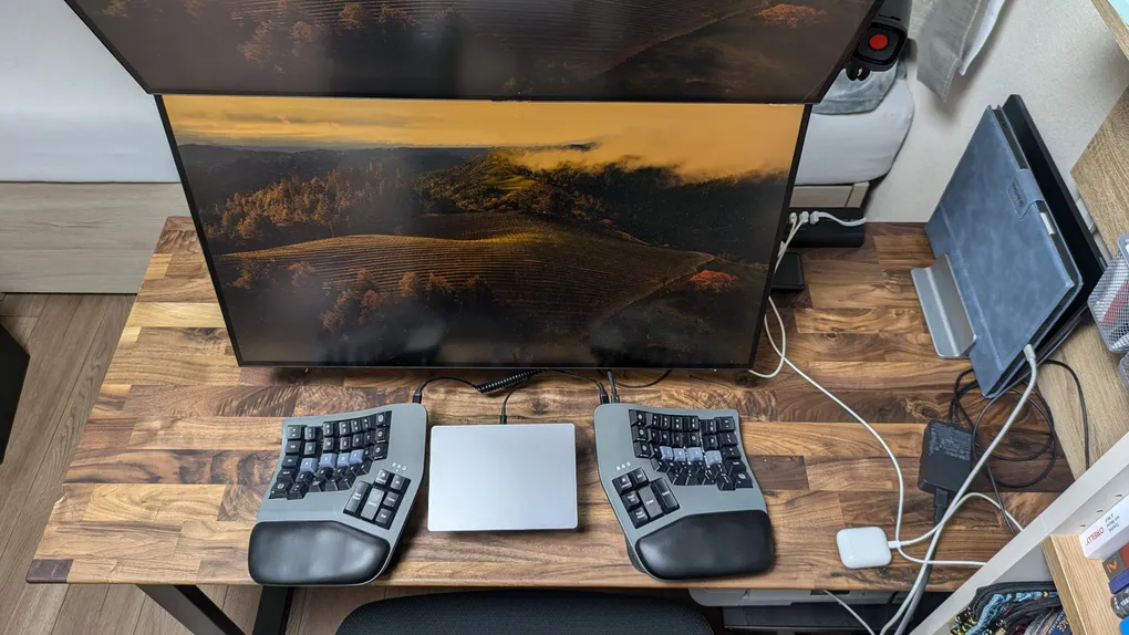 - せっかく無垢材を買ってもモニタやキーボードなどで覆われてしまい無垢材のテクスチャがあまり楽しめなさそう